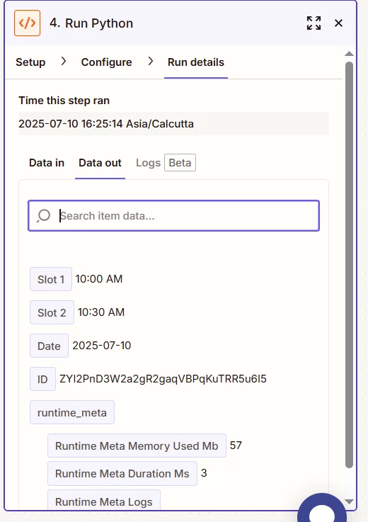 Expecting Zapier to do logic and return values like slot_1, slot_2 and date