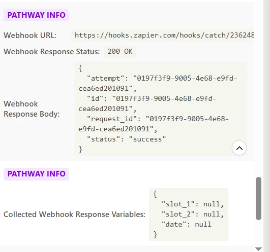 But the Zapier,not Respond back to Bland.ai with a JSON payload immediately in the webhook response body