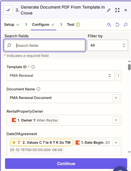 It seems like some fields from Coda aren’t being passed properly to the Crove step.