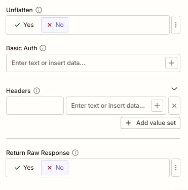 Here are the rest of the Zap settings from above