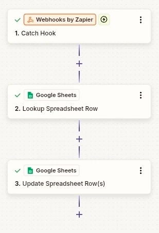 I am using a webhook to update a spreadsheet row. See screenshot below for the current setup.