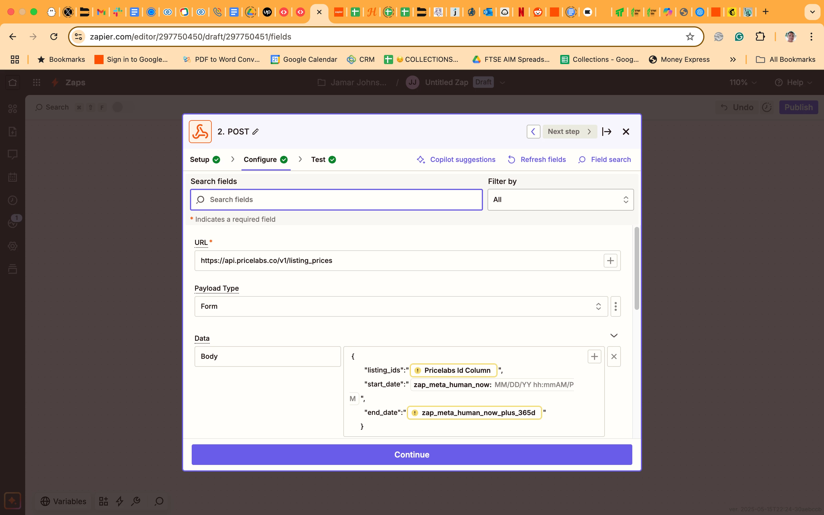 I tried to do API using zaper webhooks for Pricelabs but I am getting an error. I attached the screenshots