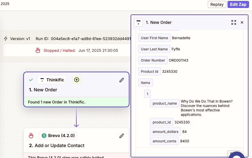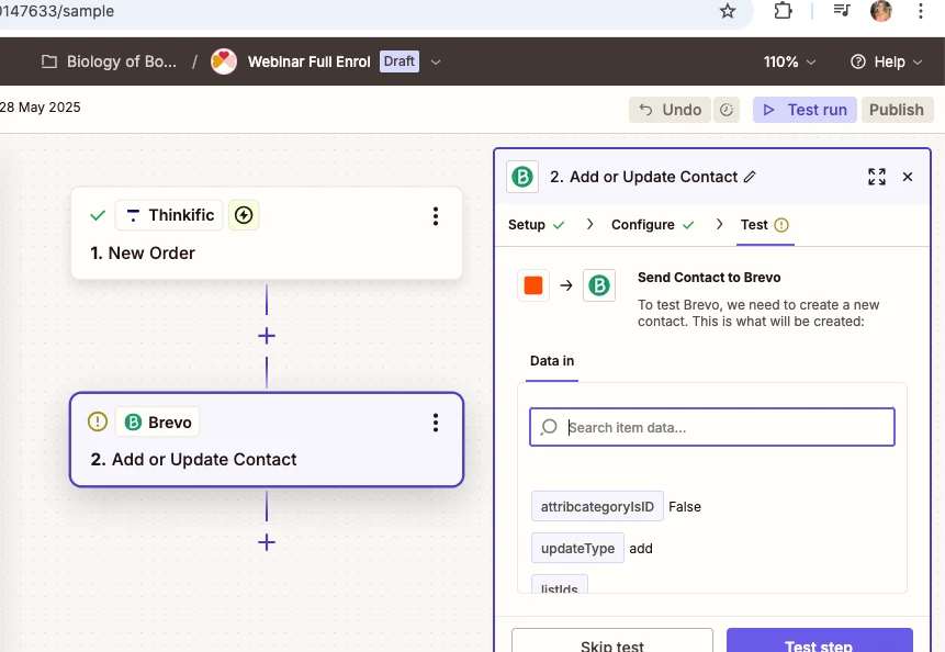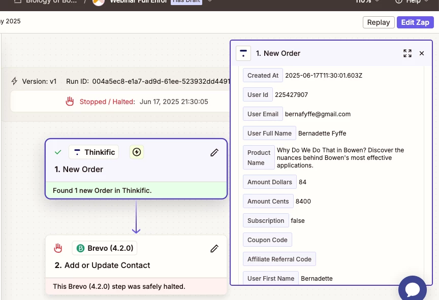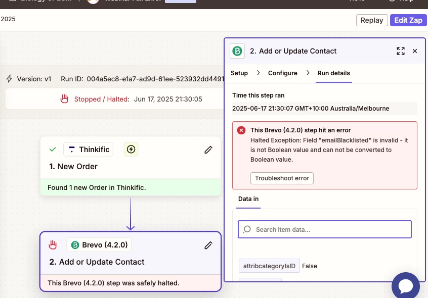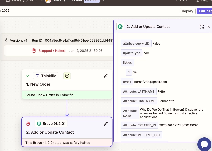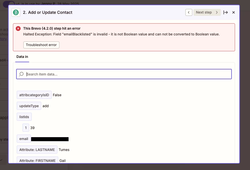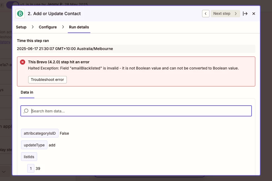 This Brevo (4.2.0) step hit an error