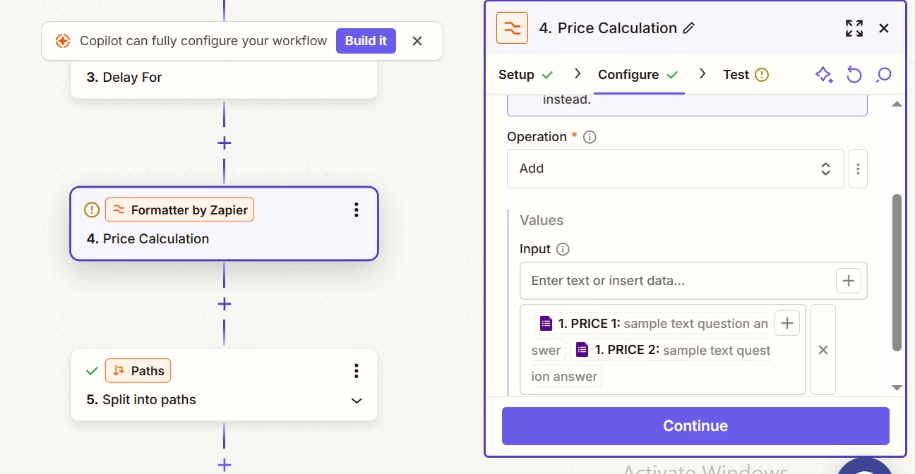 I’m trying to add up prices i extracted from my google form using formatter, but its saying invalid format. I dont know if the error is from the format i used in the google form in terms of numbers or from my zappier. Please help