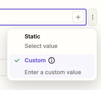 For the field “Event” switch to ‘Custom’ mode to enter a static value or map a dynamic variable.