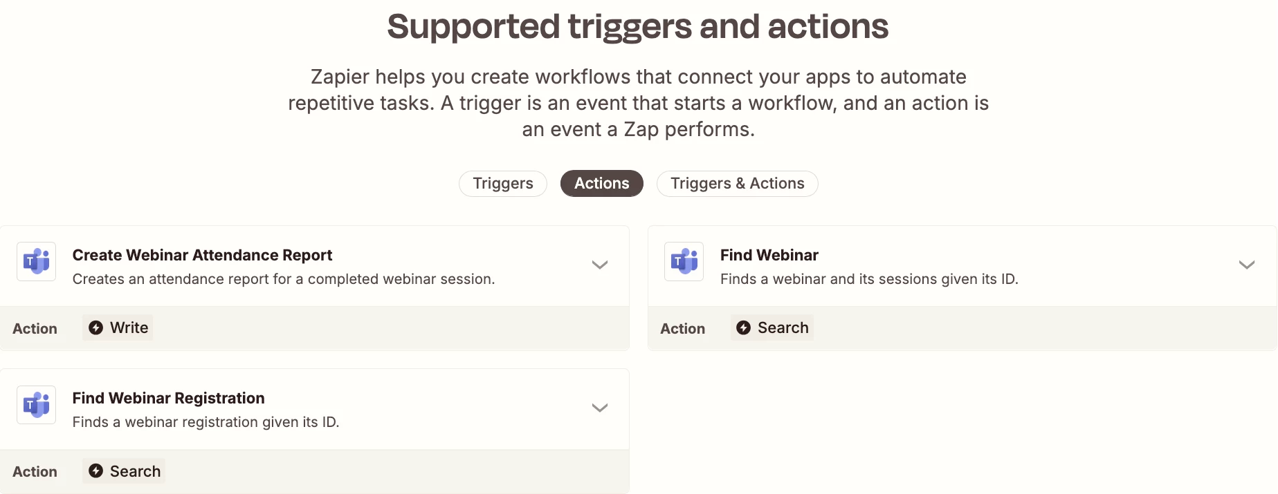 Does Zapier have an action to add participants to a Teams webinar, or would I need to use a custom API call? If anyone has set this up before, I’d appreciate any tips.