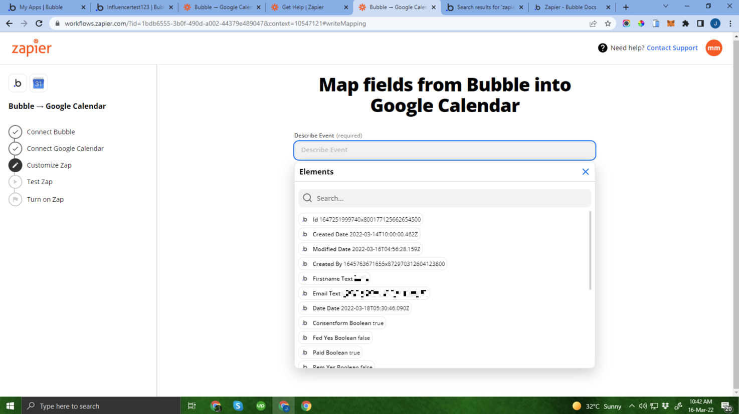 in my bubble database i have this field see in screenshot i want to get booking date,booking time,client email,client name in zapier describe event please help.
