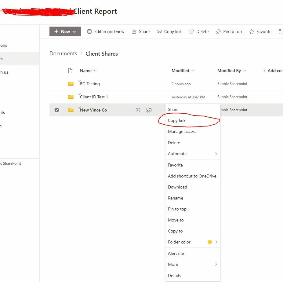 This actually does work, but when a client clicks the link to go to SharePoint, it requires them to login. We need to access the “Copy Link” URL from the original picture so that it bypasses the login screen (which we tested, the link that gets copied manually does indeed bypass the login screen).