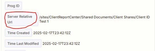 How I have it setup currently is it’s pulling the “server relative URL” and sending it to my Bubble application: