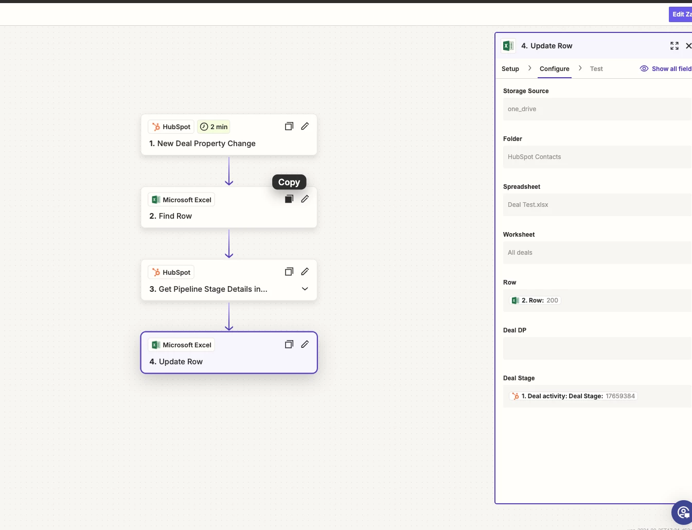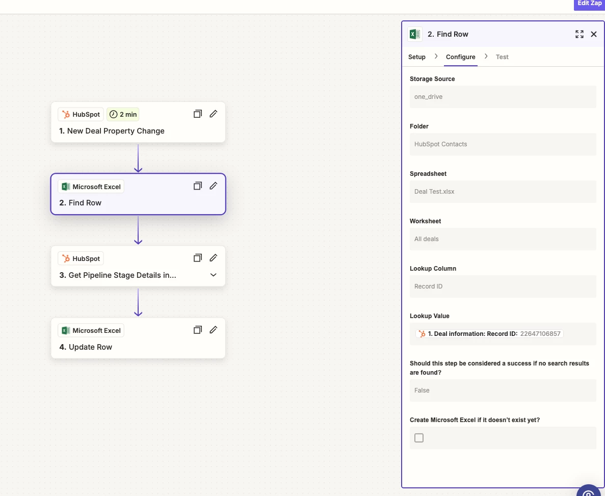 I’m trying to set up a zap that automatically updates an excel sheet anytime that a HubSpot Deal stage is updated, it corresponds with the excel sheet. I had it working but now it’s not, Can you please help?