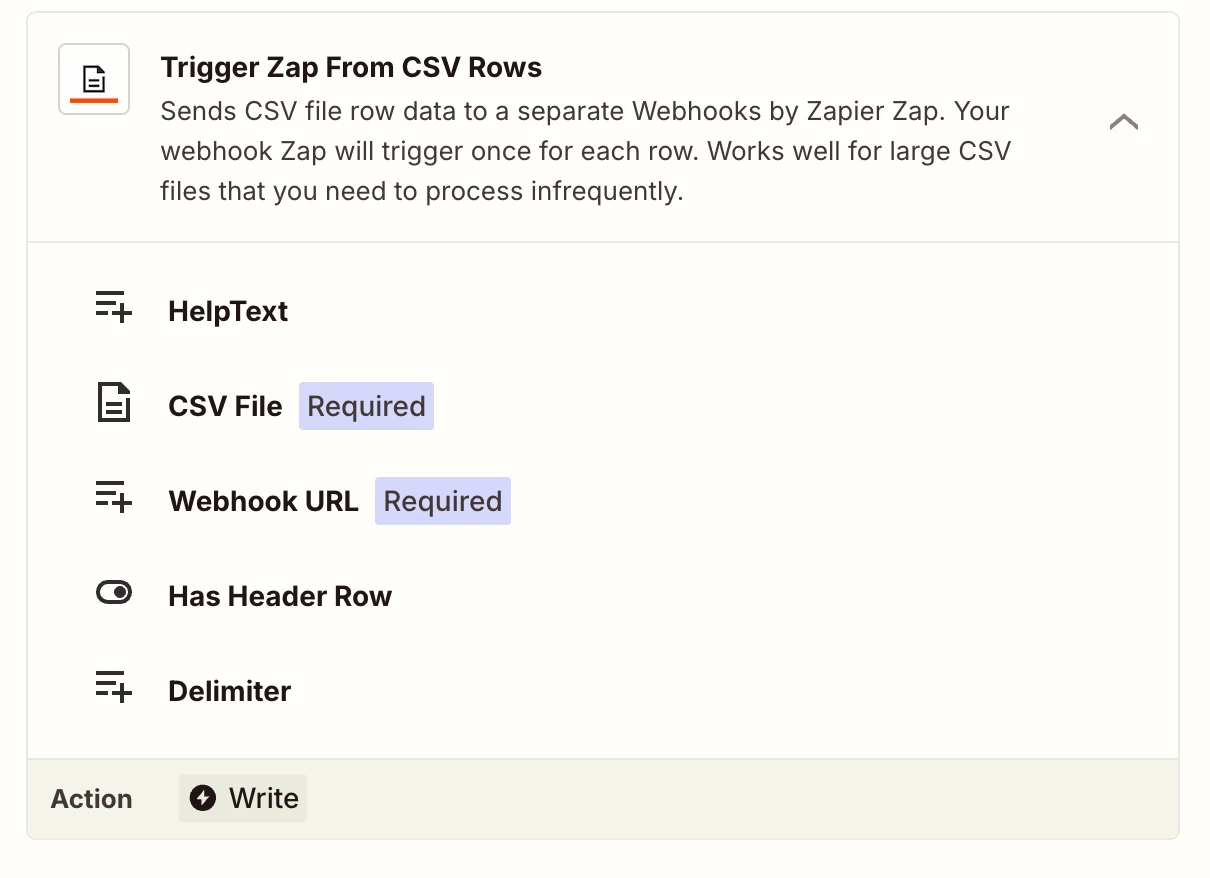 Try to use Trigger Zap from CSV action of Files by Zapier. You would need two zaps and webhook to achieve it.