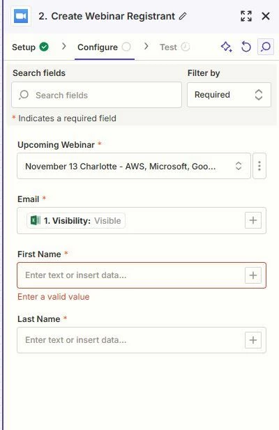 I want to create a Zap, that will automatically register these people for a Zoom webinar, that is also correctly linked with my zapier account. FYI I have other Zaps, that work fine, that take Memberspace data (first name, last name and email) and correctly create a Webinar registrant. I now want to do the same with Excel data.