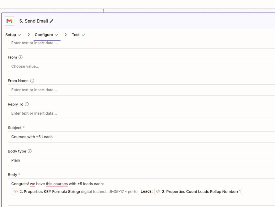 However, I previously had a Filter step in Zapier that compared the number of leads coming from the Code step. Now, since I’m returning an object containing an array, I can no longer compare the number of leads in the Filter step to continue the Zap and still send everything in a single email.
