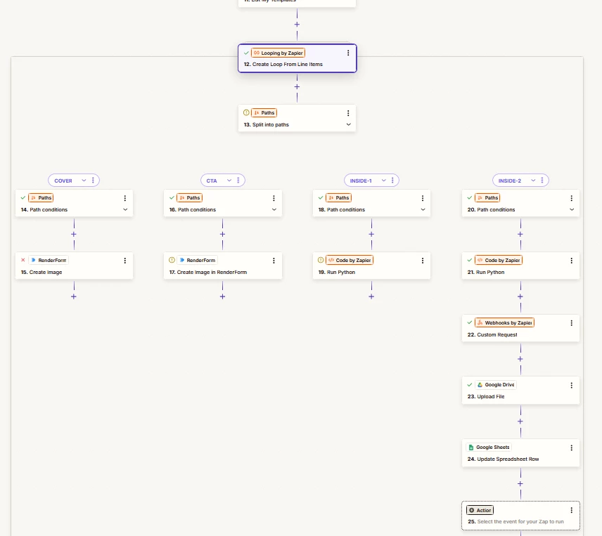 In the loop I have 4 paths that each do certain tasks depending on the line item.