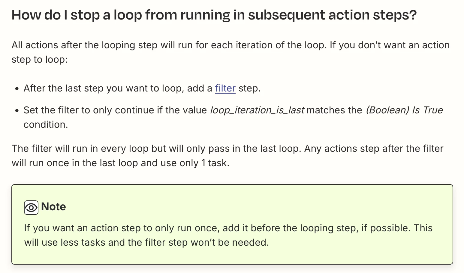 If I add a filter at the end of the loop as advised in other threads, it will of course never be run. How can I break out of this loop?