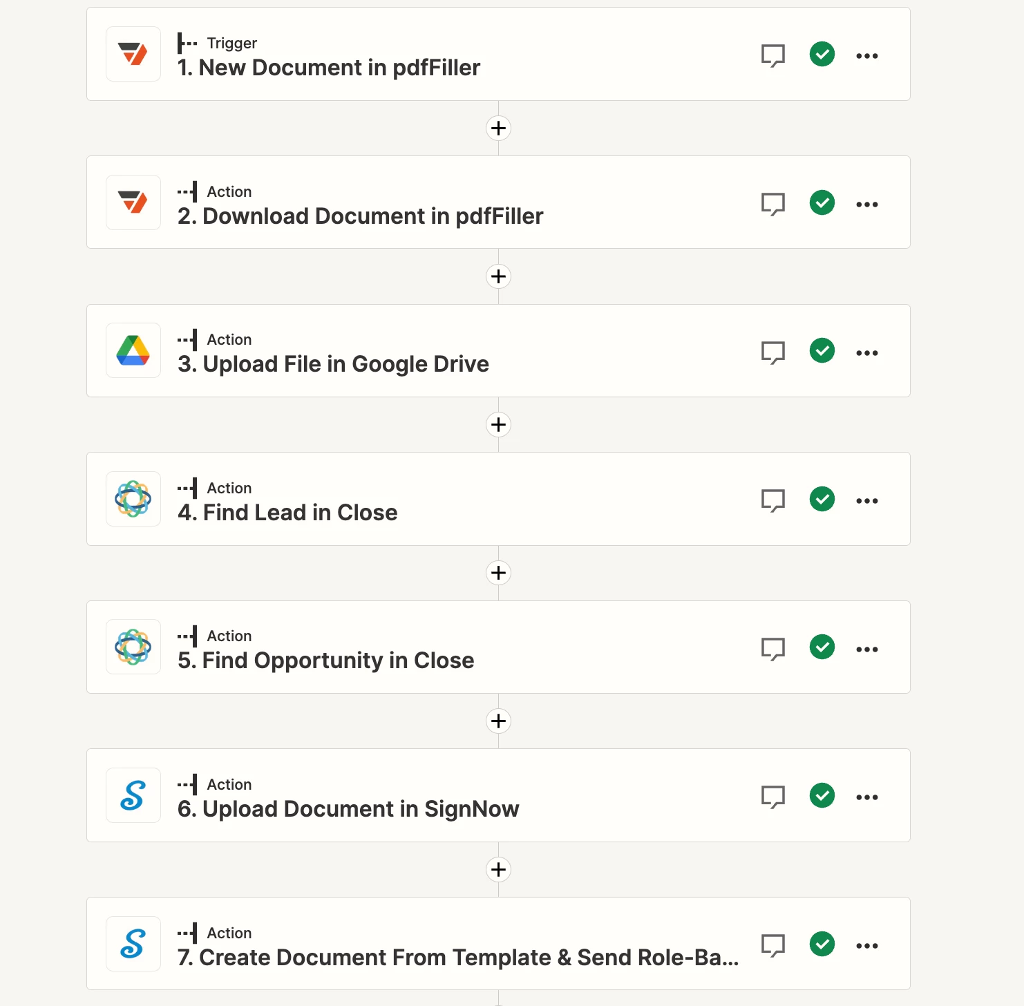 I’m looking for a work-around. Ultimately Docusign had a similar issue, but is there something I’m missing between PDFfiller and SignNow? I’ve attached screenshots of my flow so you understand the trigger point is a newly filled document, and I’d love to take that document into signnow and have it create a signature template to then send out. I have the signature fields mapped out in PDFfiller, so you’d think SignNow would be able to convert. I also tried a workaround with creating an entirely new document from a template that I would fill in SignNow instead of PDFfiller, but this also isn’t plausible as the fields are only meant as fillable fields for the recipient so I can’t lock the data once inputted.