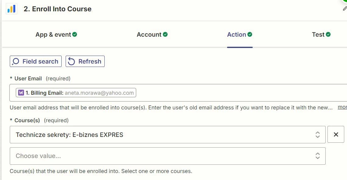 hey, I have created Zapp to connect Woocommerce with LearnDash, when a customer buys a product, it is to be added to a specific course in LearnDash, unfortunately, even though I choose which course it should be added to, the customer is assigned to all the courses I have in LearnDash. The number of courses is equal to the number of Zapps I have set. If I turn one off, the client is not assigned to it. Has anyone encountered something similar and have an idea how to solve it? I will be very grateful :)