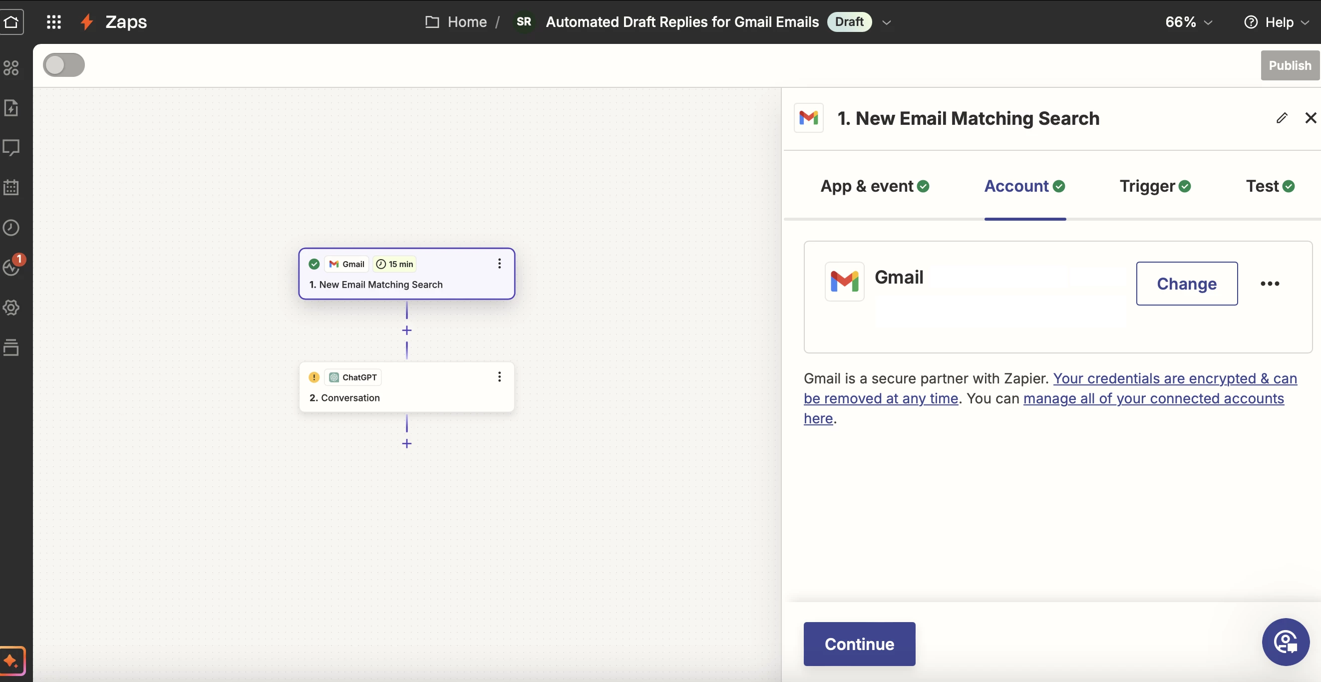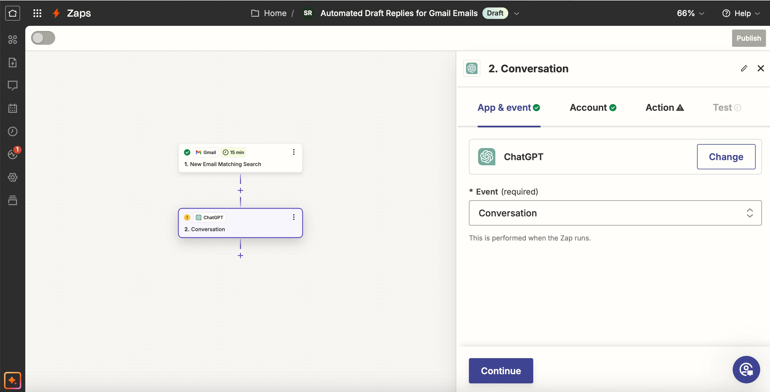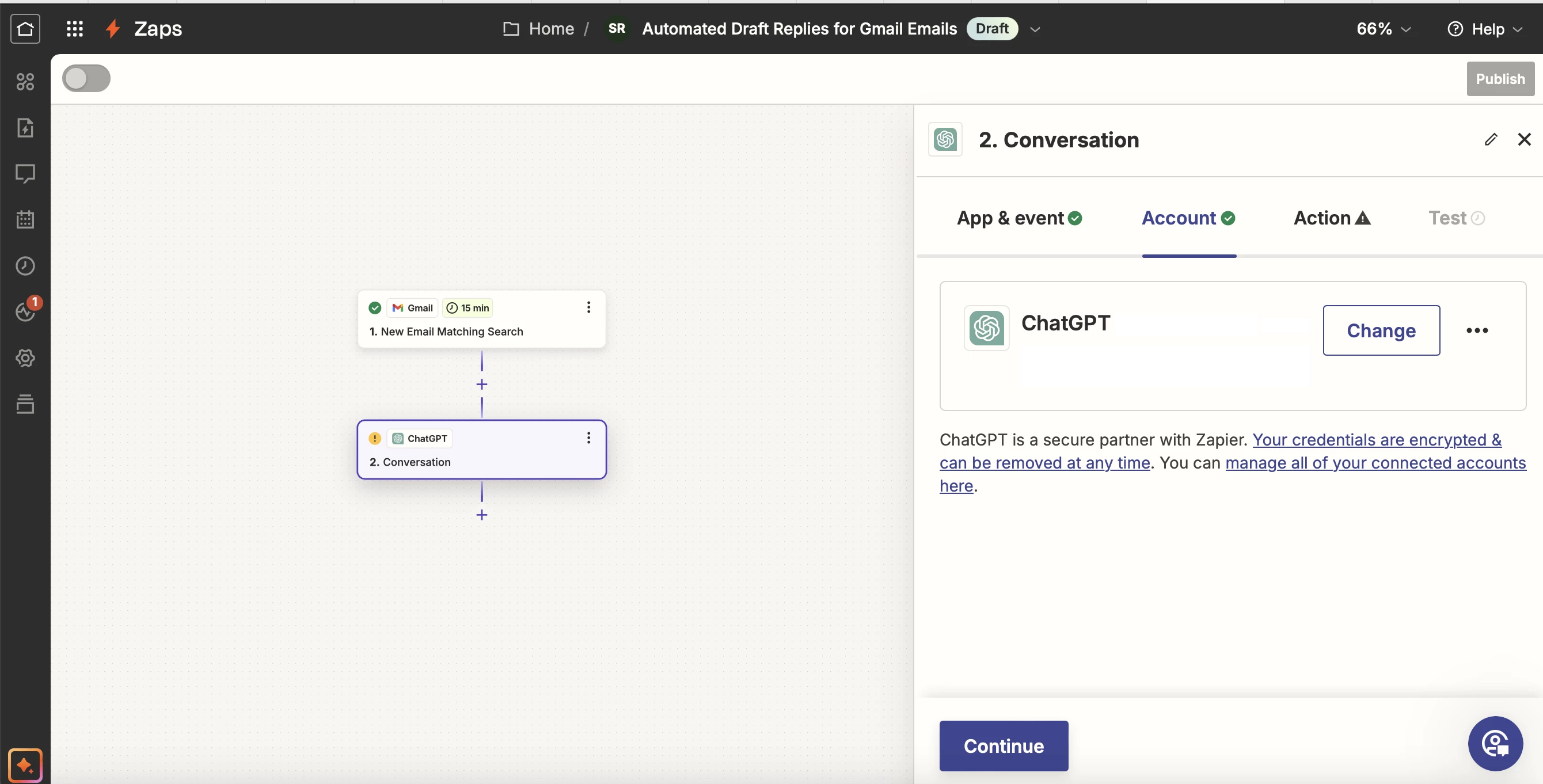 I have the pro ChatGPT account. I currently have a free Zapier account. I'm happy to upgrade it to a paid one if need be, but it hasn't told me I need to do that though.