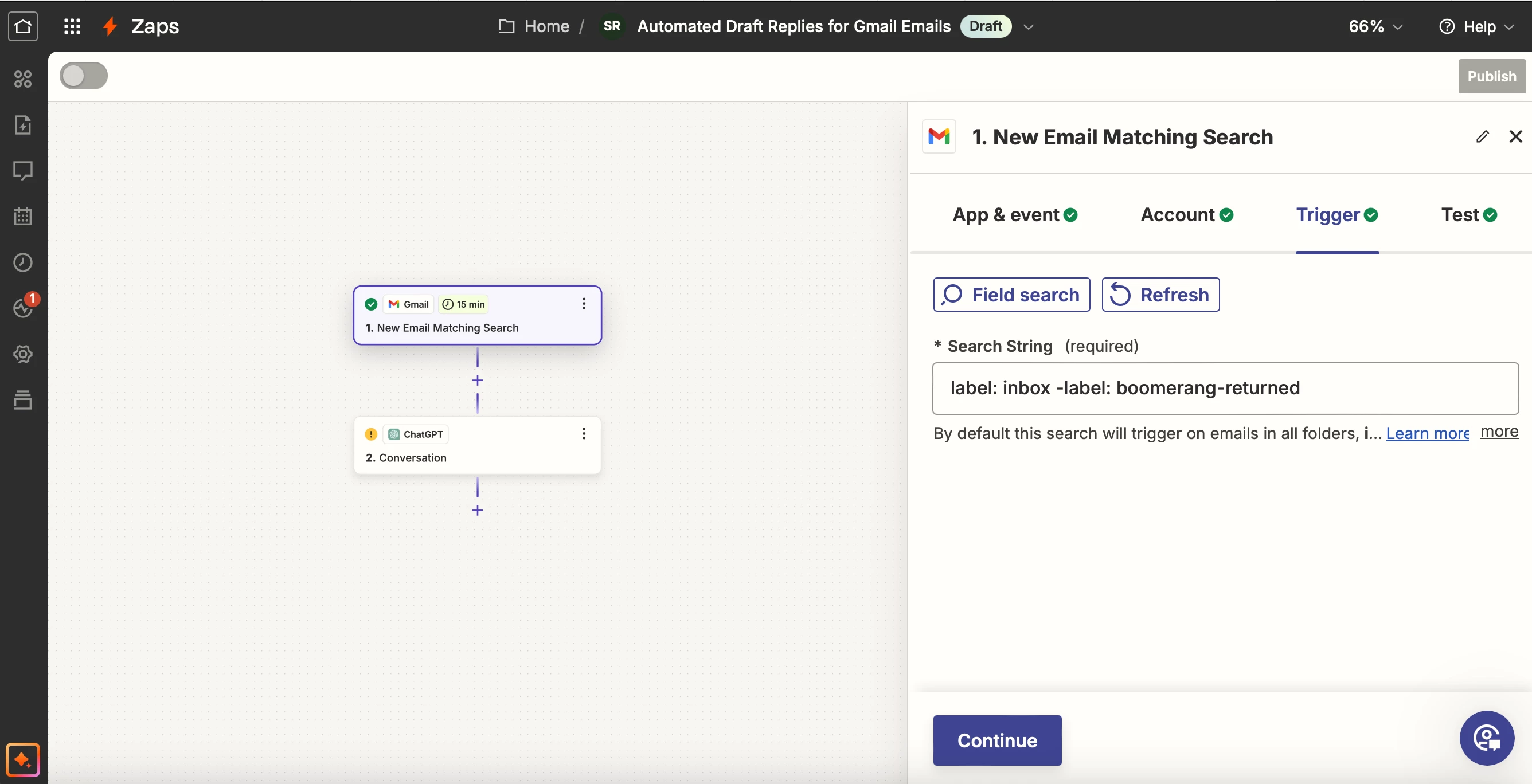 Hi, Bear with me, I’m a newbie here! I’m trying to set up a zap so ChatGPT drafts a reply to all emails into my Gmail inbox that have a label of "inbox" and do not have a label "boomerang-returned".