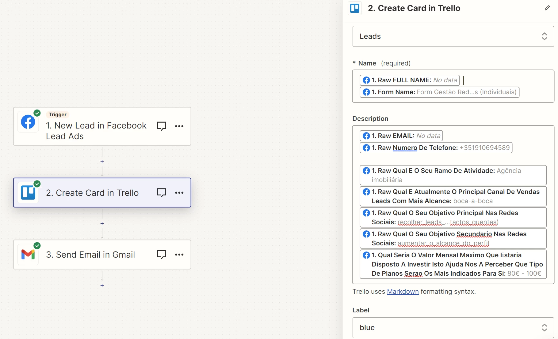 I tried to create an automation where it automatically creates a trello card with the name on the title of the card and info of the lead on the description. But it didn’t work. If you could please tell me each step to make this work sson, I would appreciate.