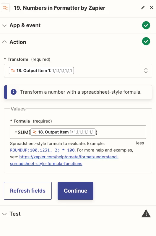 Hello I have a Zap that is bringing into notion all my orders. The quantity field is comming like this: 1, 1, 1, 1, 1, 1 and I would like to use a formula to sum all the numbers to have the amount of items in the order.