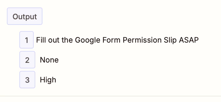 I think you are suggesting I add some additional steps to pick out the individual variables. Which I suppose I could do. I wanted to take the array and pick out each variable (text) and map each into 3 separate fields in the next step (Notion database insert)