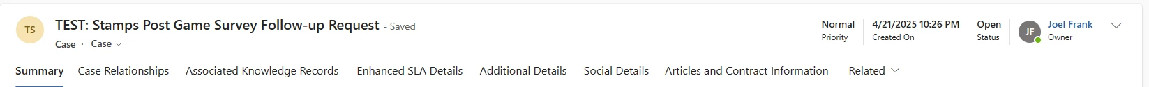 Below is the case that was created in Dynamics, as you can see, I was set to the owner (presumably because it used my account as authentication in Zapier?)