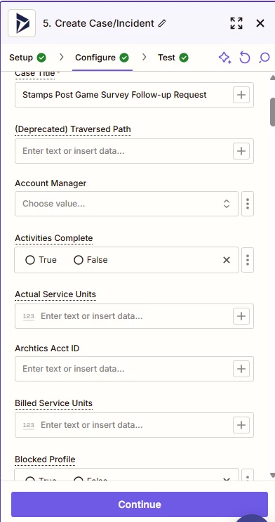 Here is a screenshot of SOME of the fields in the Dynamics create case configuration: