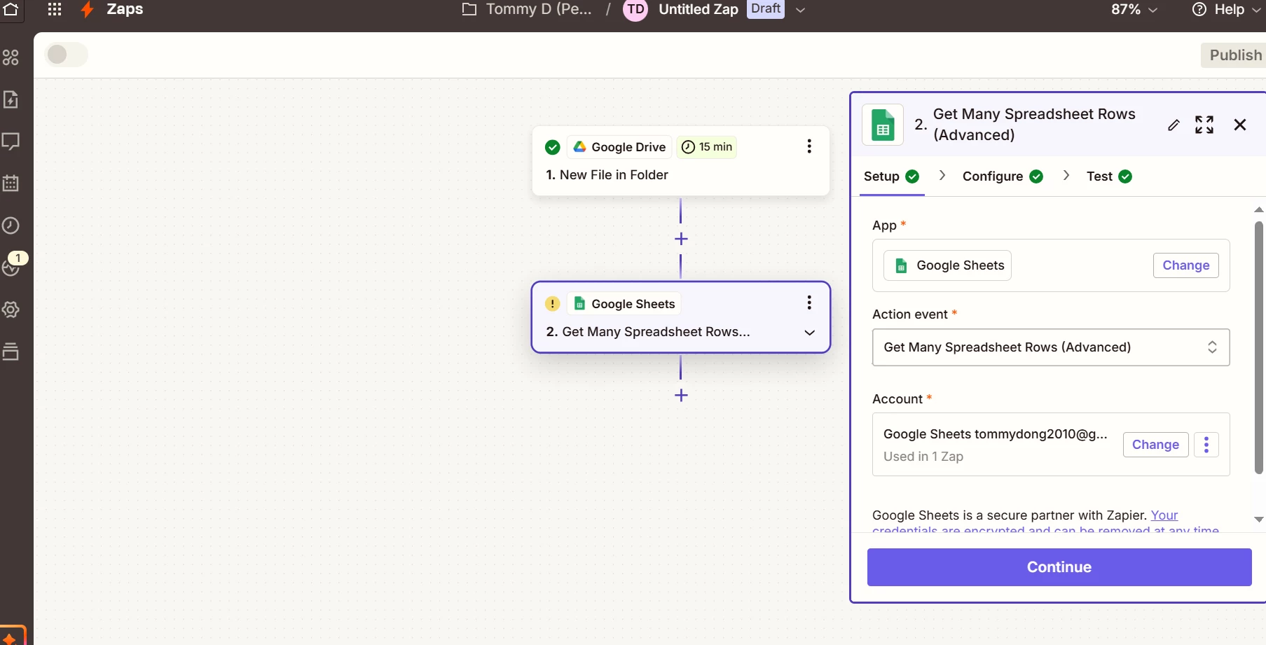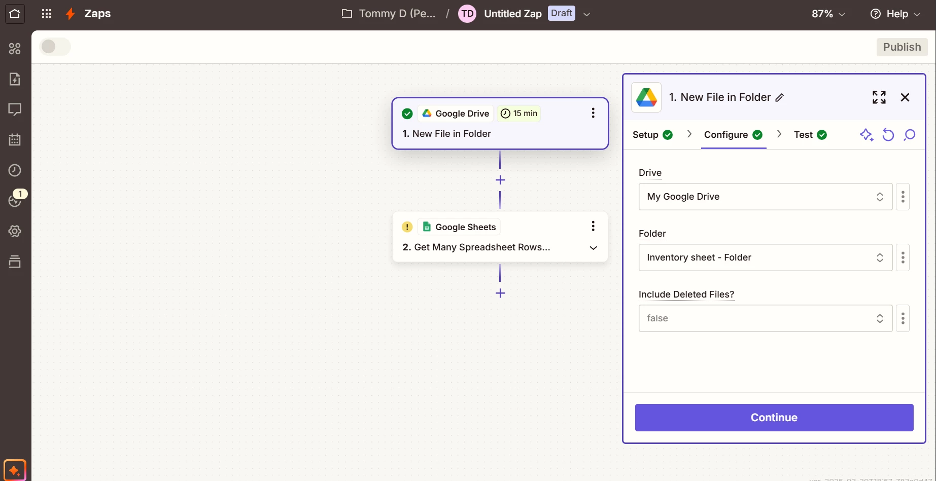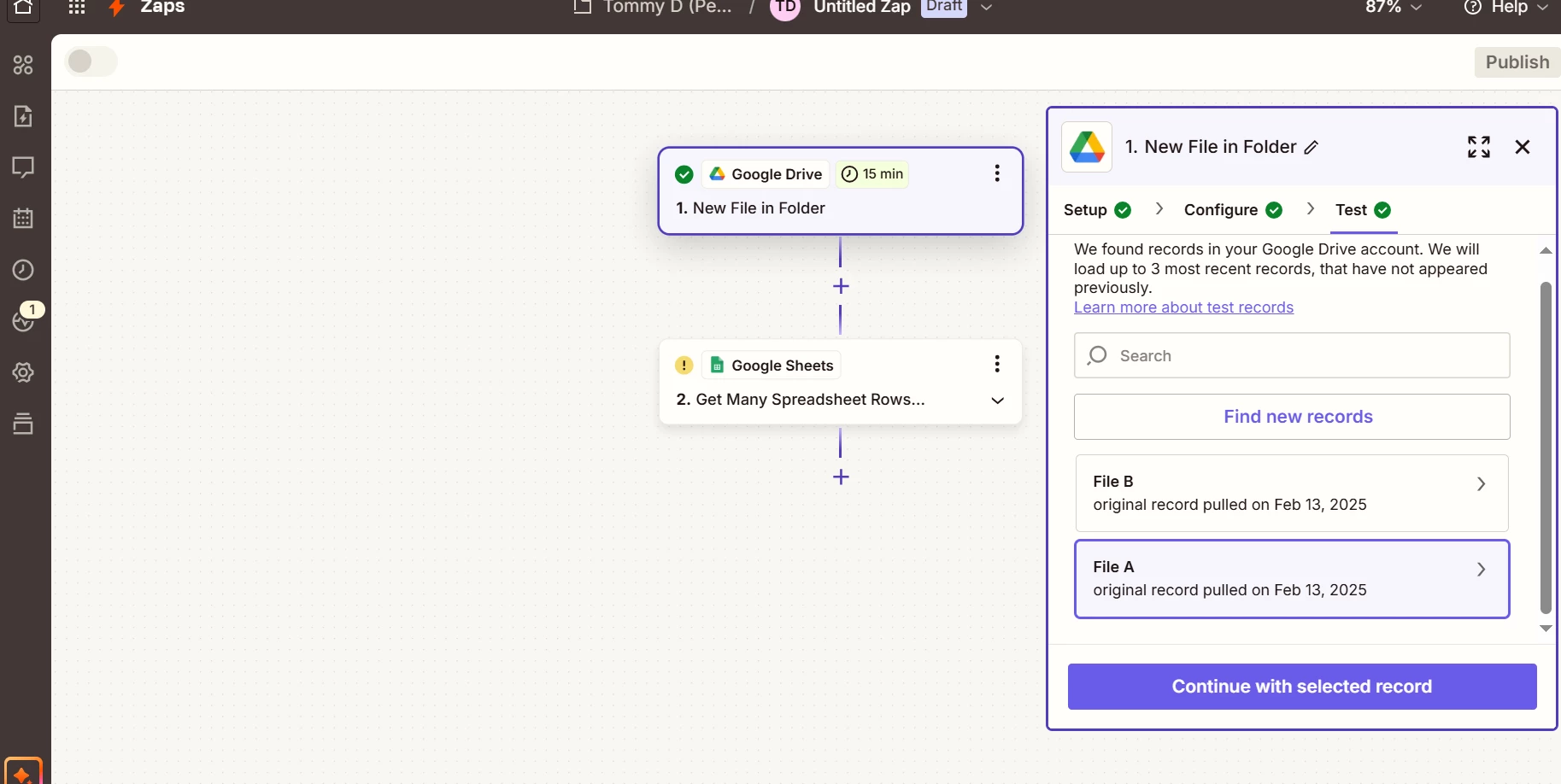 I’m working on an app, and I have the logic for the app down. It scans a barcode, pulls from an Airtable, I set as the data source, and outputs a colour based on what the code is associated with. But the problem is, I need to be able to update all the codes and colours based on the new ones for the day, so I need an automated function for it. But I’m not quite sure how Zapier works yet, and I’d like some help. I have the trigger down, where when someone puts a new spreadsheet into a Google Drive, then something will happen, but I’m not quite sure how to make the action. Thanks!