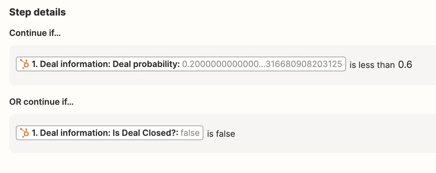 If the deal stage changes to “Customer is interested” / “Deal Won” / “Deal lost”, then de Task should not be triggered.