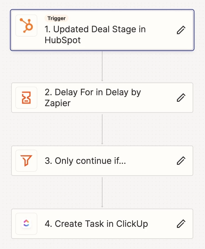 If this deal stage is not changed after 3 days. I want to create a Task in Clickup.