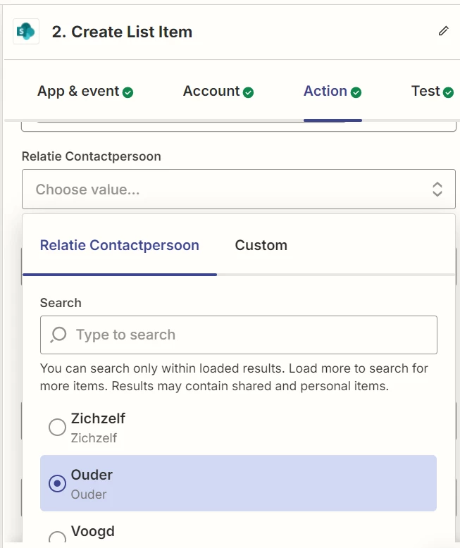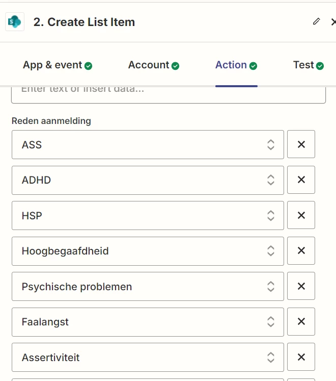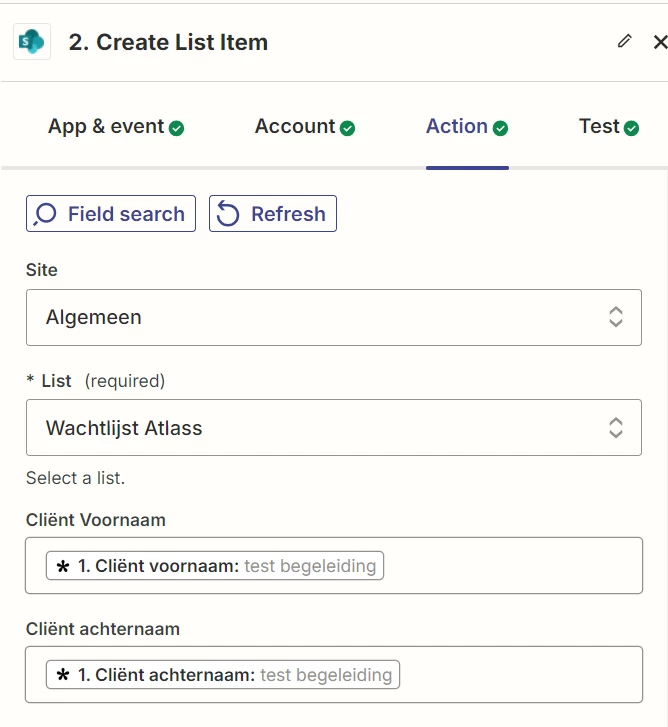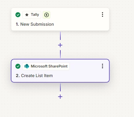 My trigger is a filled in Tally form and the action in create a new line in Sharepoint.
