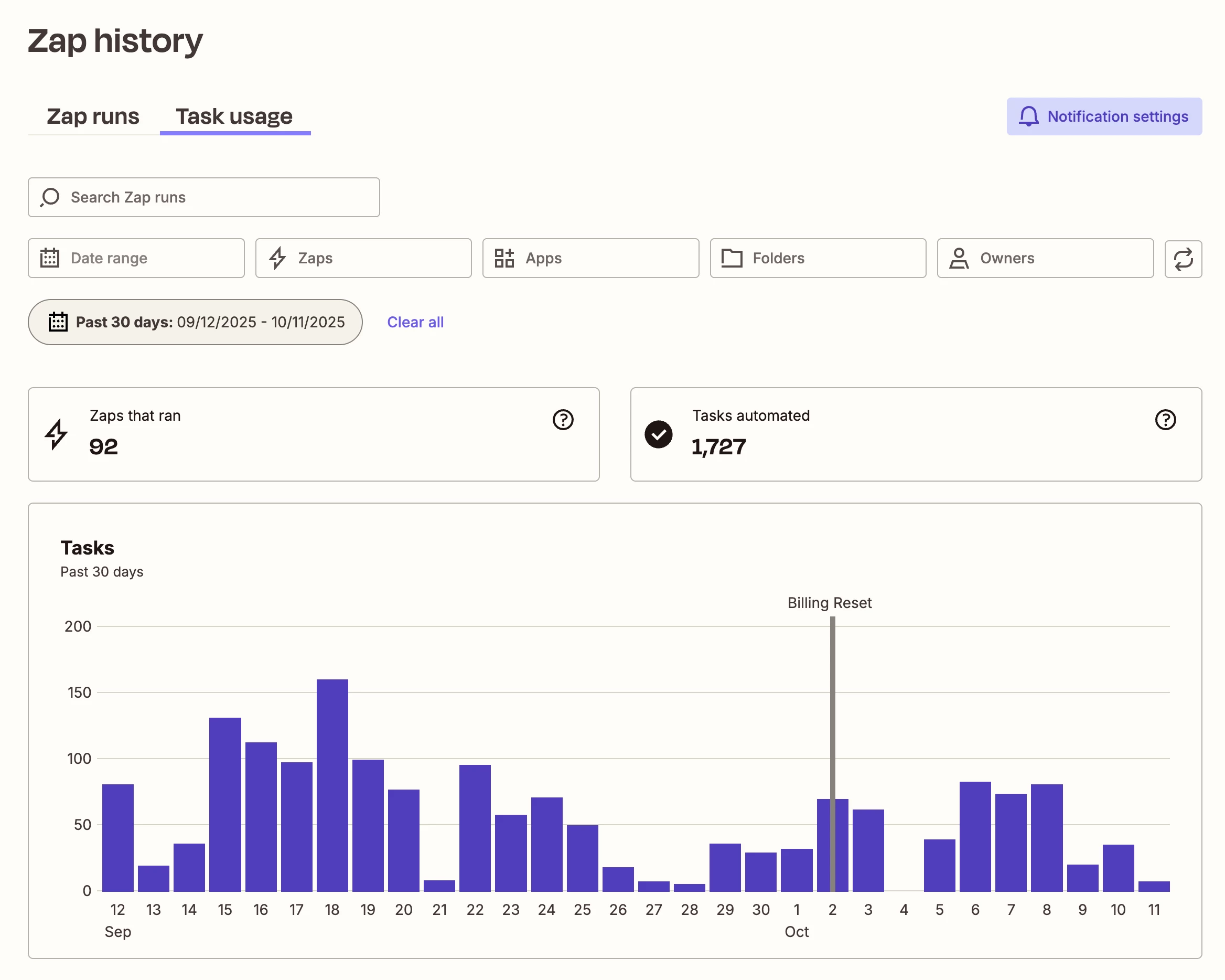We’ve just had a Zap consume 90% of our task limit in a day. What’s worse is our task usage limit reset a couple of days ago, so we only have a very little of our task limit left to last us the next 28 days or so.
