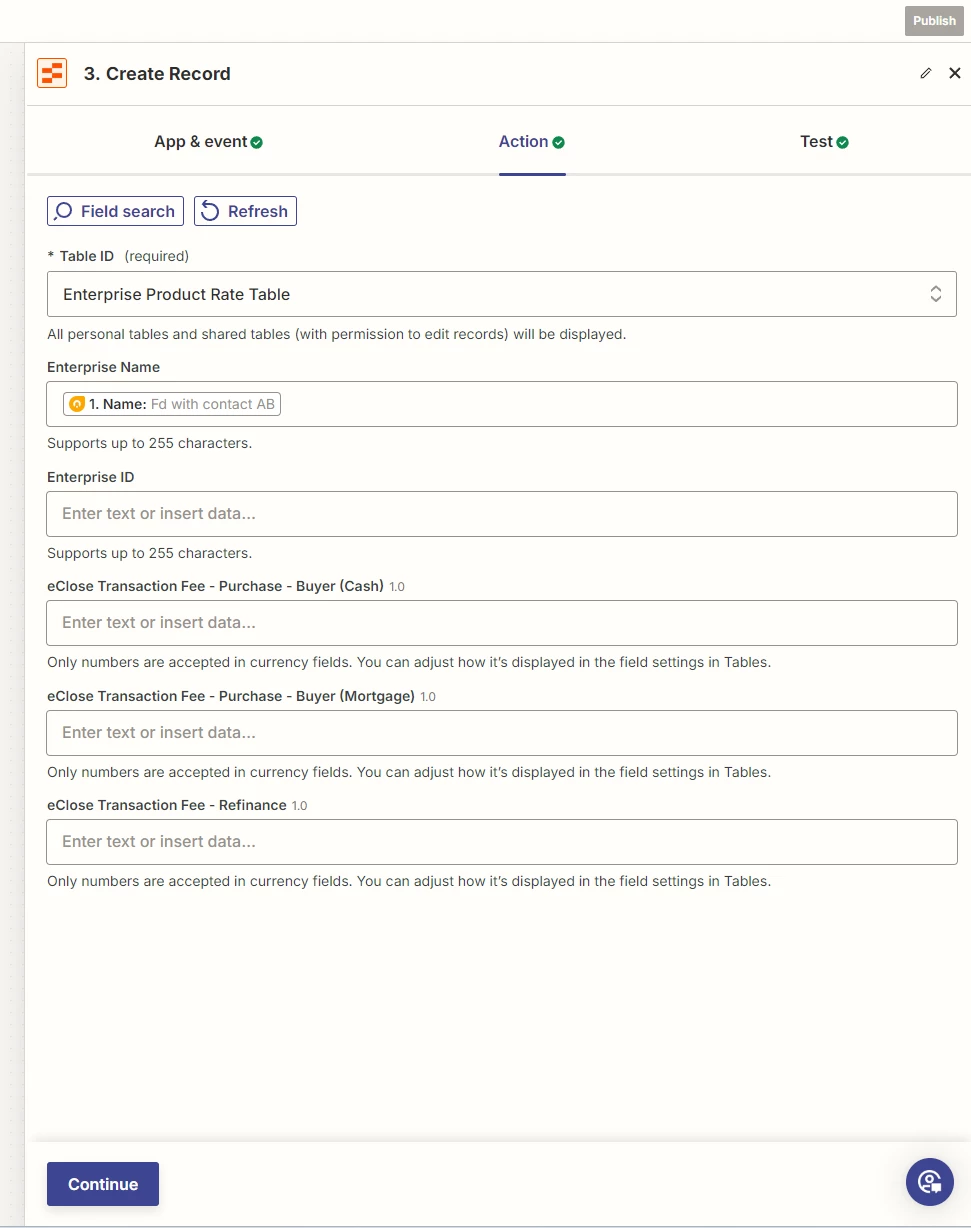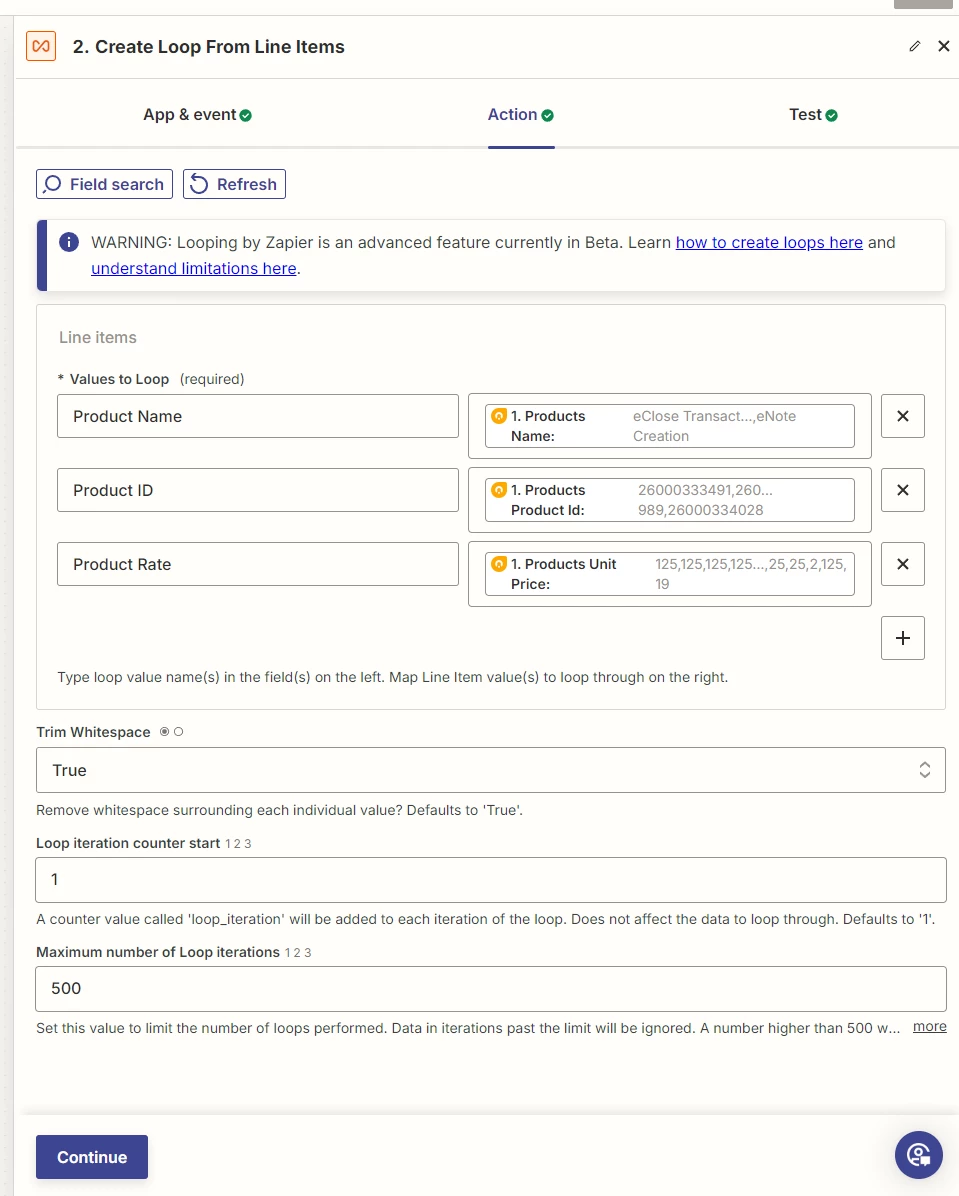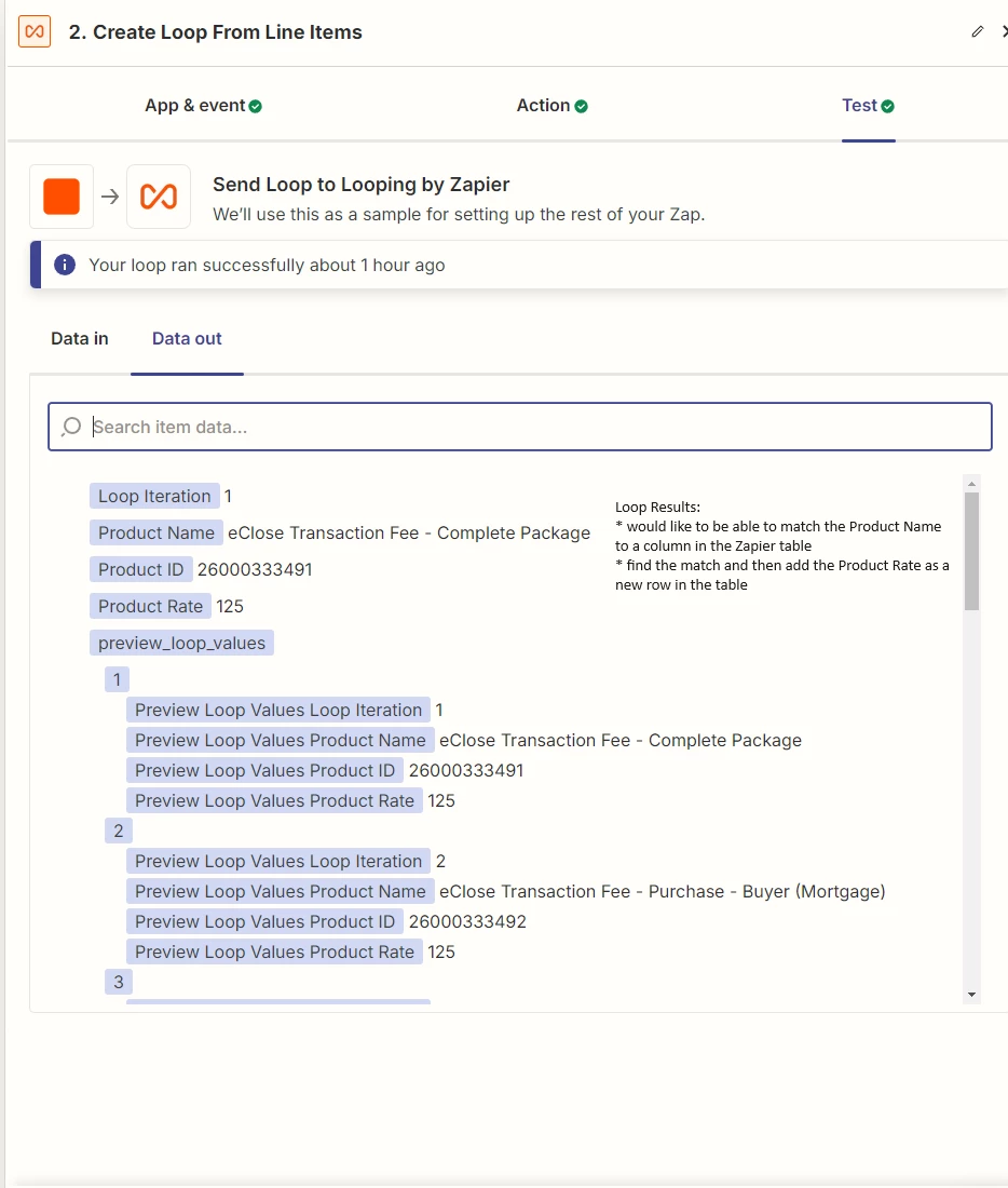 I have created a loop for a list of products and the associated price for each product. I want to take the results of the loop and create a new row in a Zapier table (or Google Sheet) that will match the product name with the column header and add the product price in a new row.