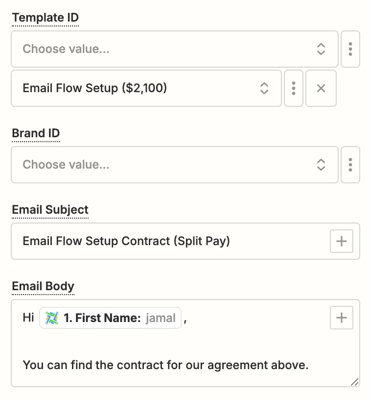 Whenever someone is added to the status “Send Contract & Payment” I created a zap that should send out the contract via DocuSign.