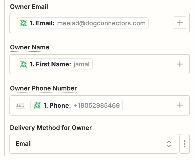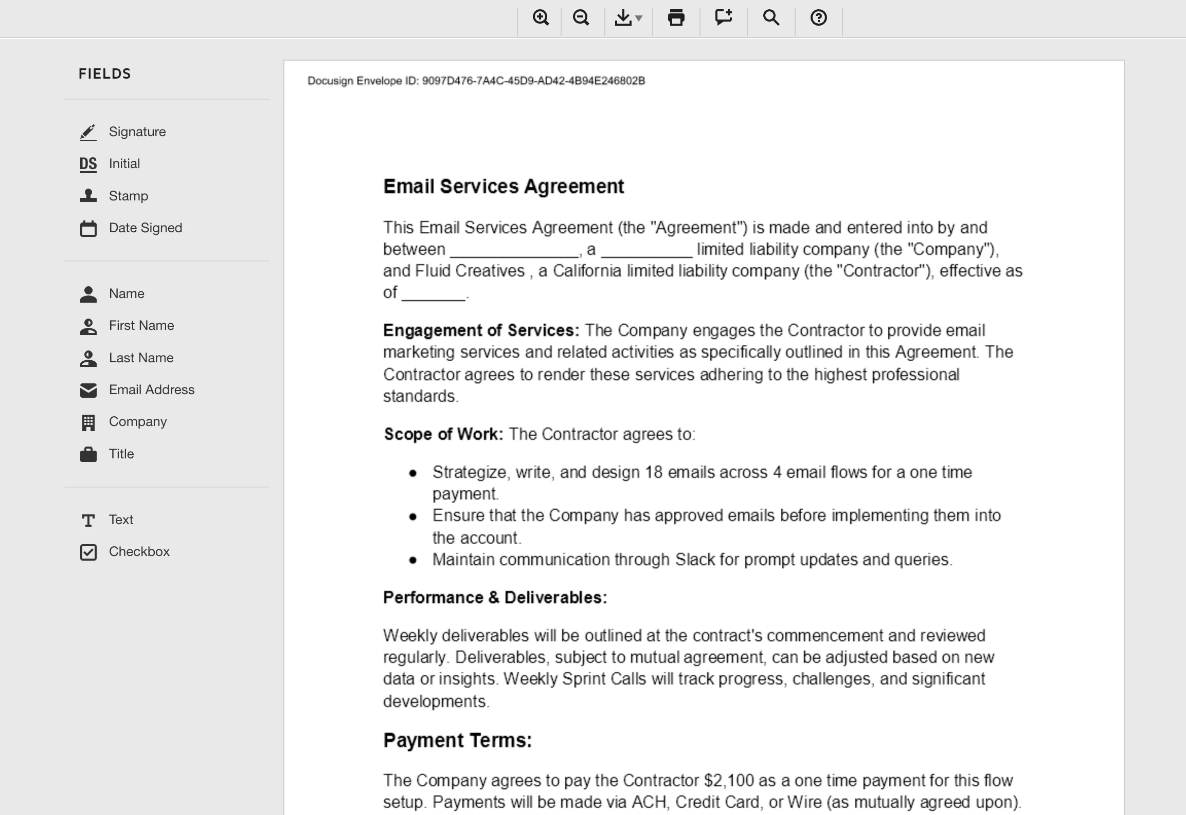 But when I test it out with a dummy email the fields on the contract don’t show up (see image attached).