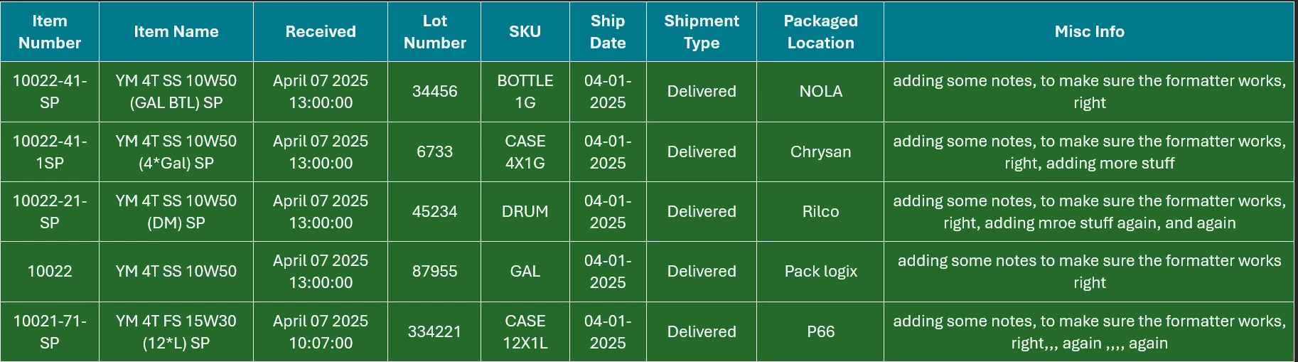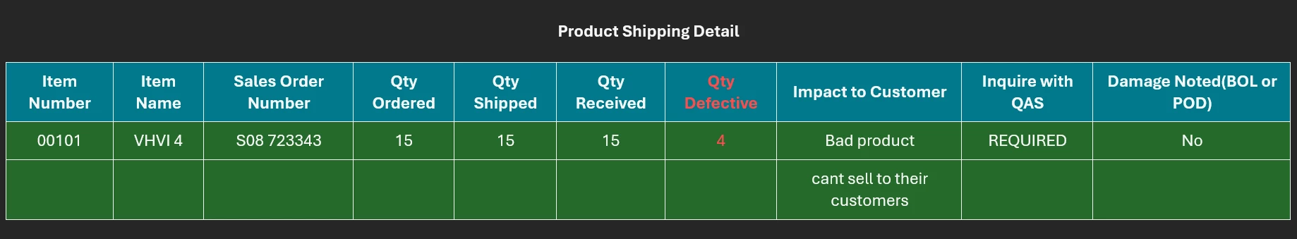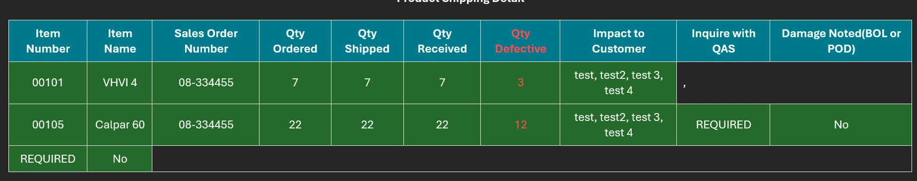 You can see how on the first line after the Impact to Customer it pushes Inquire to QAS and Damage Noted down a line do to my current setup. I would like Impact to Customer to stay intact with commas if the user puts them in the sentence abut still be able to build the table. I was playing around with formatting and just cant seem to get it to work correctly. It either does the above(or worse) or