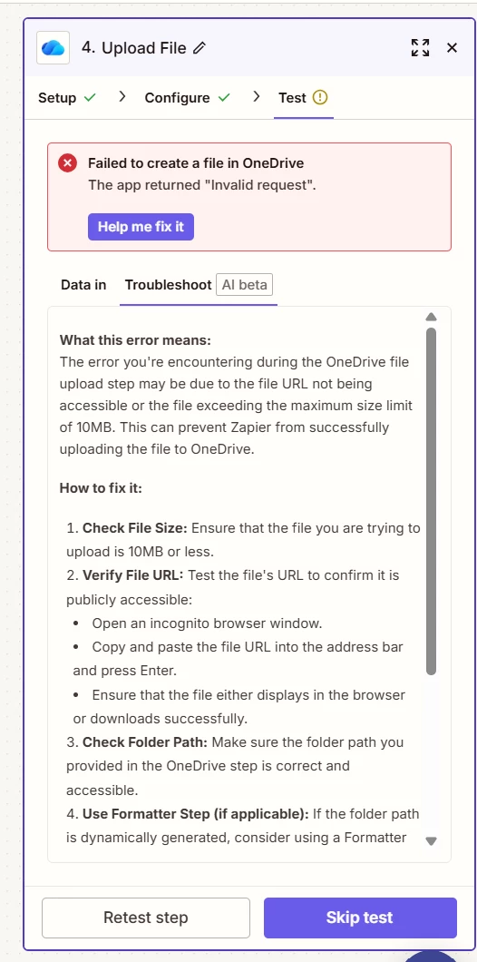 I’ve tried explain this to Zapier’s copilot but it only give me a a selection of few folders to upload to. I’m not sure where to go from here. Can anyone help with this?