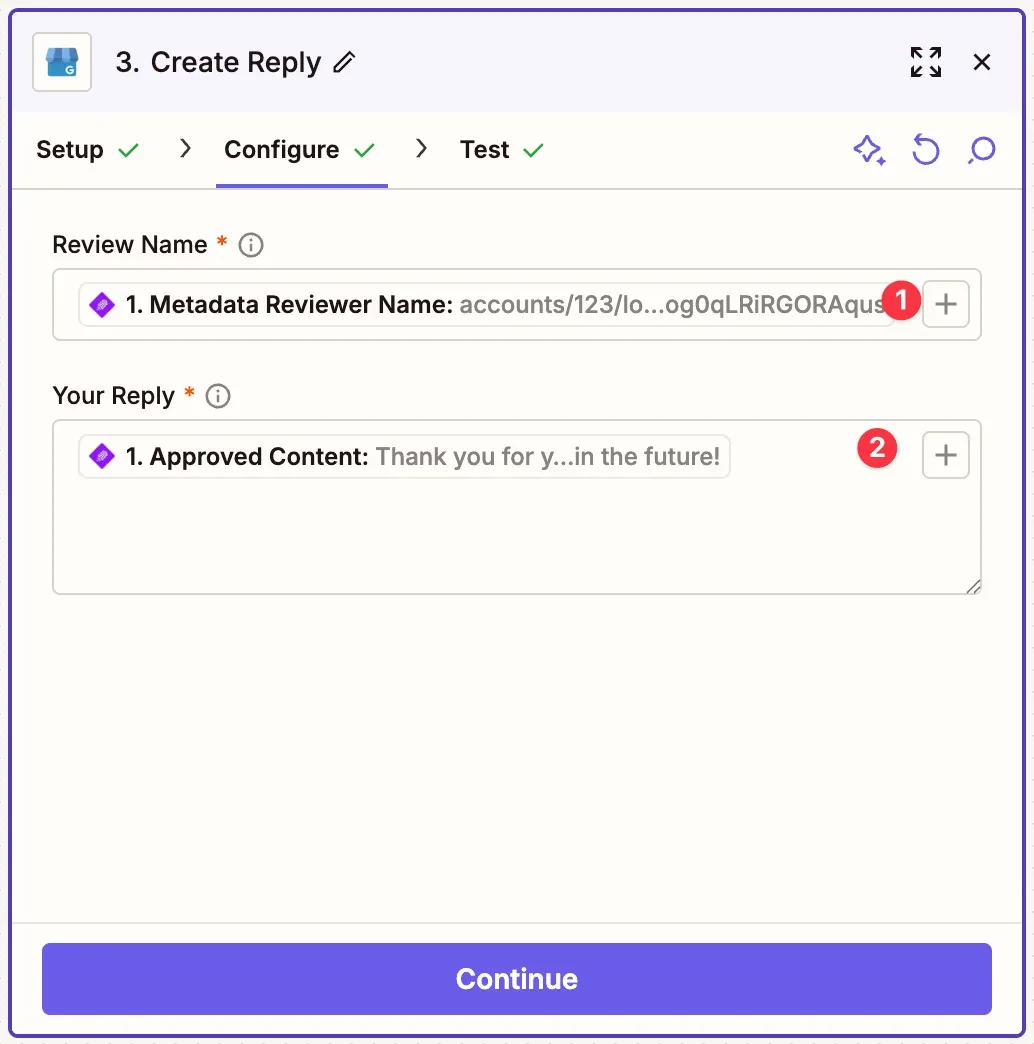 - Zap 2: Task approved → Filters for approved only → Posts to Google Business Profile