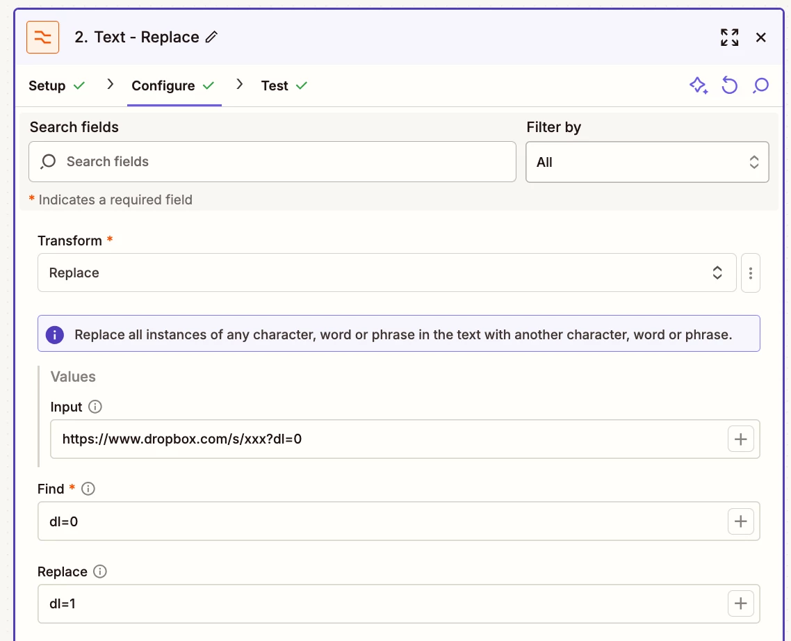 To use files in Zap steps a File field will expect a file object or a file url.