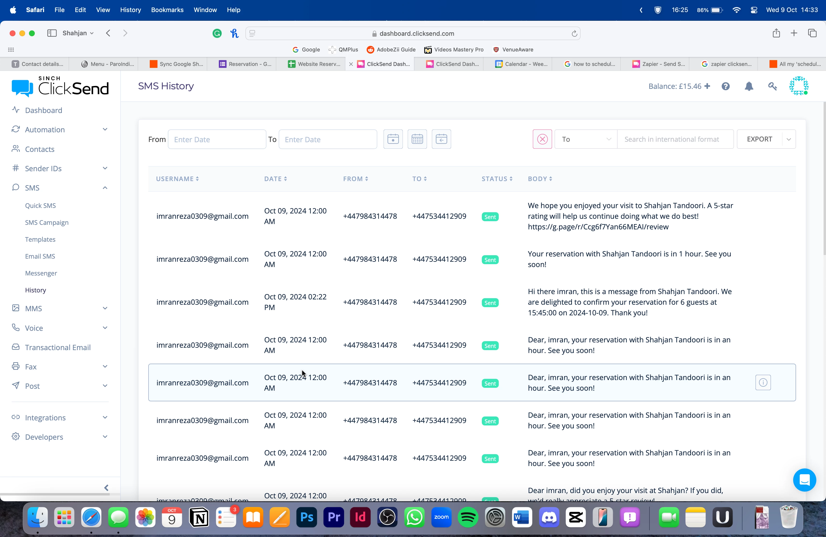 All my scheduled sms messages from clicksend are sent simultaneously