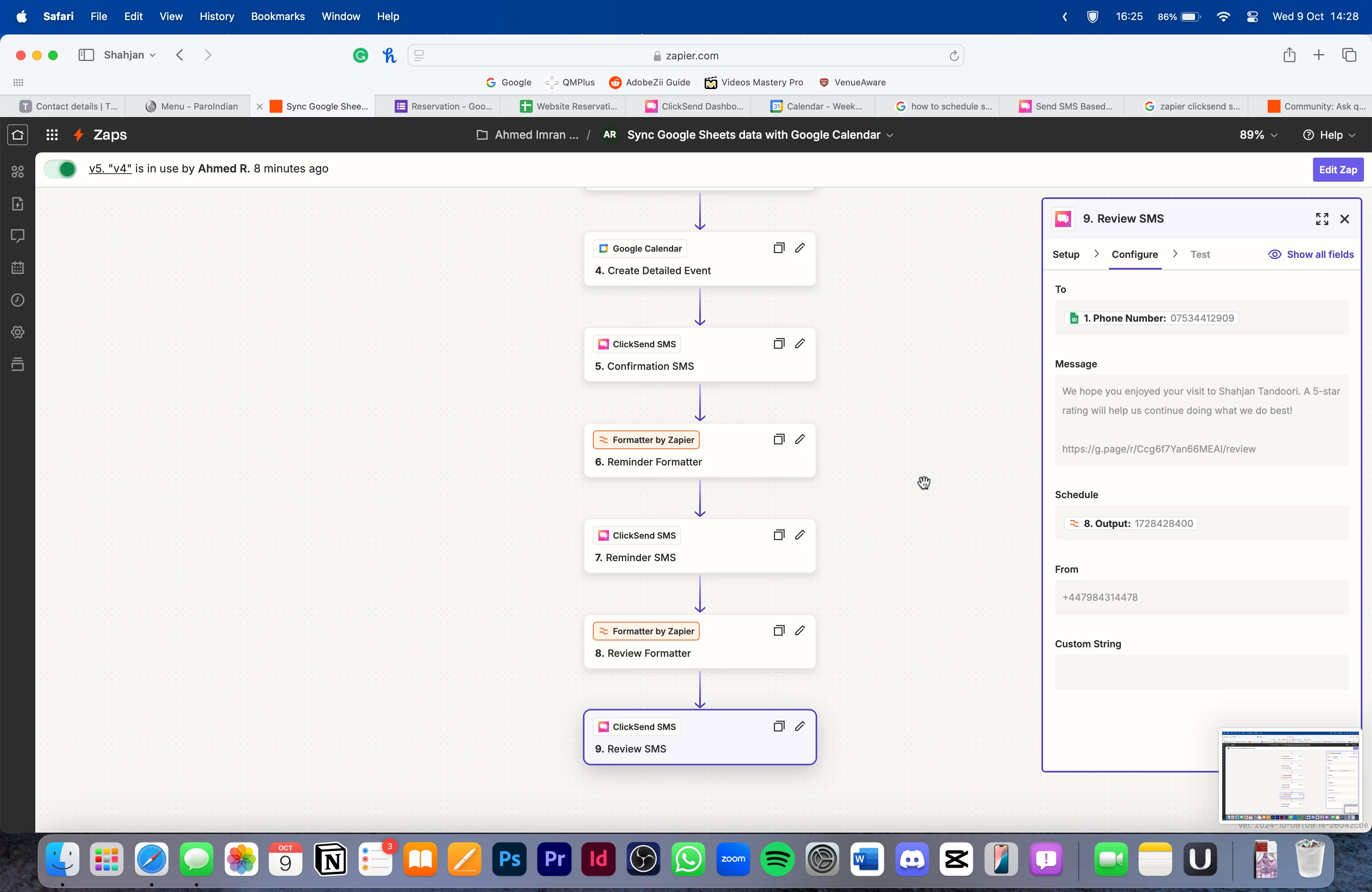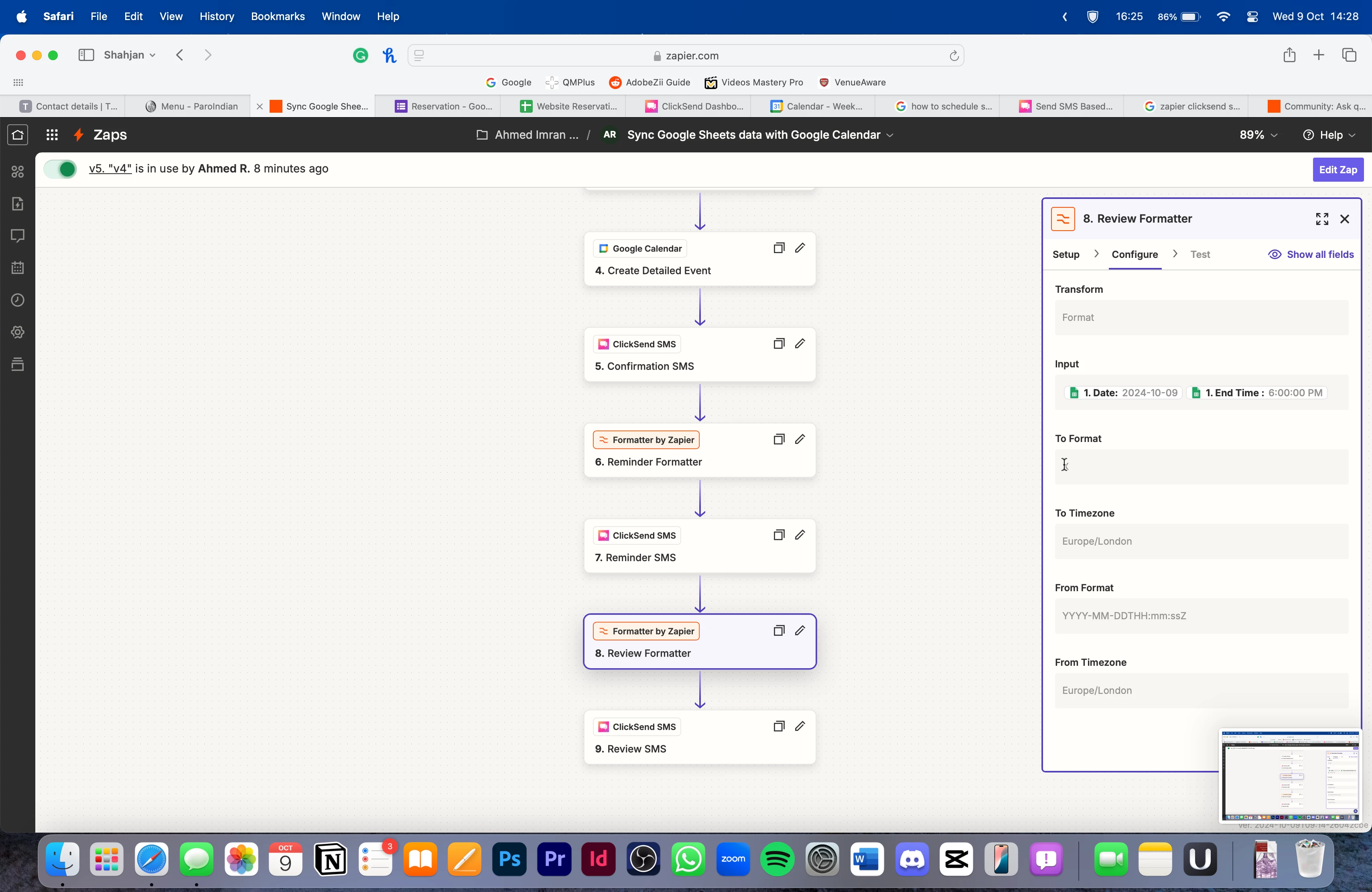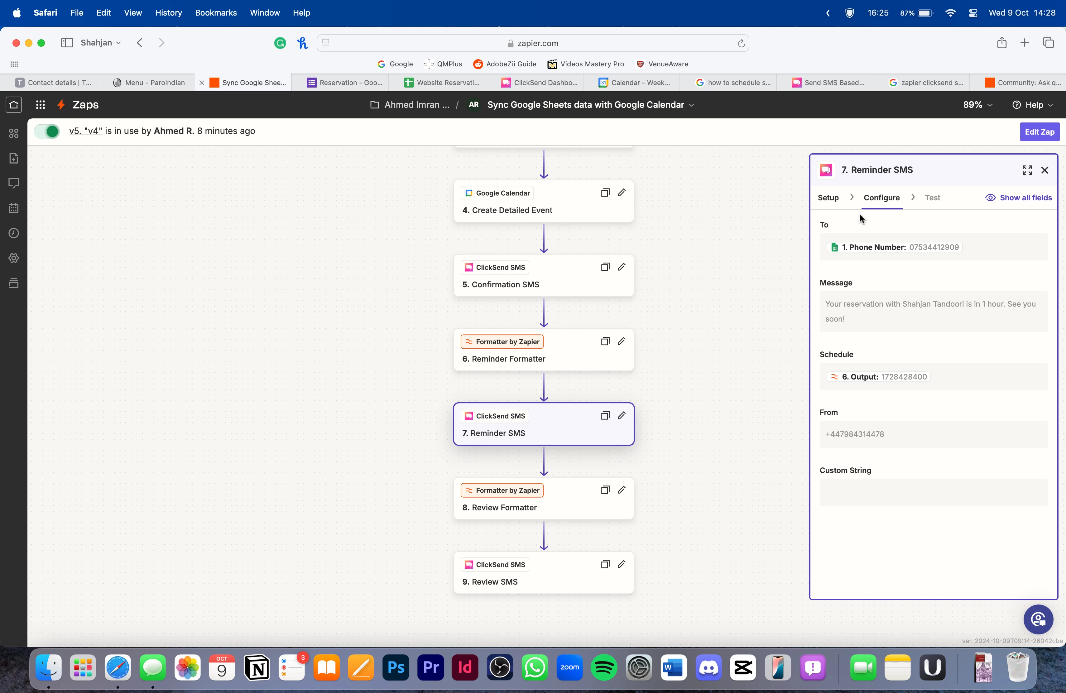 I’m trying to create an automated SMS system and in this sequence, three texts are sent. One immediately after the trigger, confirming the reservation, one an hour before the reservation, and one at the expected end time of the reservation asking for a review. I’ve used the formatter tool to change the date and time from my google sheet into a UNIX code, and then used that unix code in the schedule box for Clicksend SMS. My issue is that all the texts are sent at the same time, not in the specific staggered fashion I wanted it in. Here are some screenshots, I really appreciate any time or help given towards this.