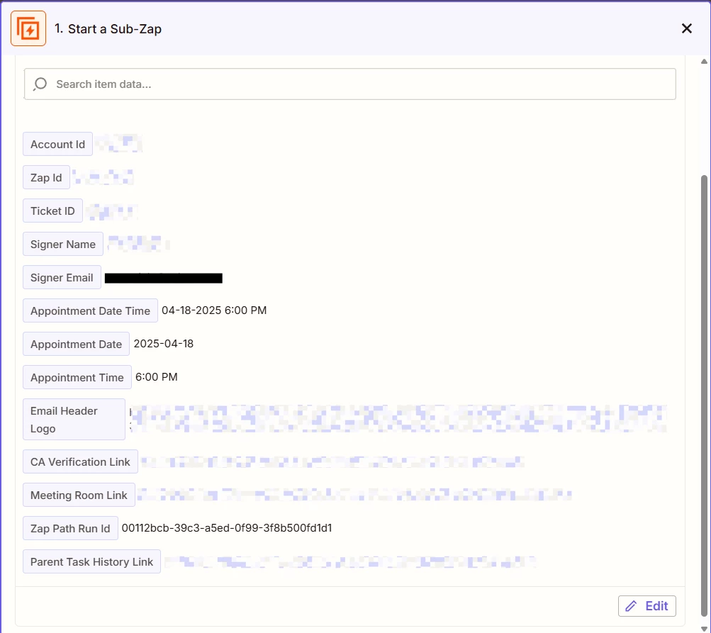 Ah, I expect the URL is being automatically censored for security reasons. I’d suggest contacting our Support team to submit a new feature request for the ability to set certain URLs or values to not be censored when using Sub-Zaps. You can do that here: https://zapier.com/app/get-help.