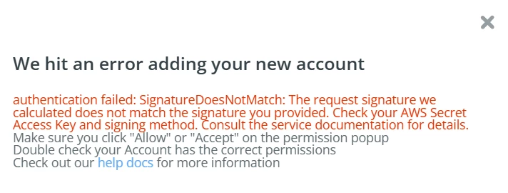 I am trying to connect my mention account to my AWS RDS SQL server. But i am getting the attached error.