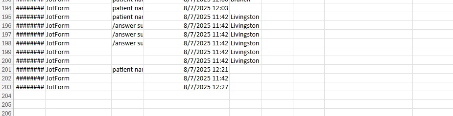 I am attempting to run a ZAP from JotForms and Zap over to an excel spreadsheet in SharePoint. A new row added to the spreadsheet. The Row creates column 1, 2, & 4 populate. None of the remaining 20+ columns update. I don’t care if the row is added at the top or bottom. I just need it to be consistent and all data to populate all fields.