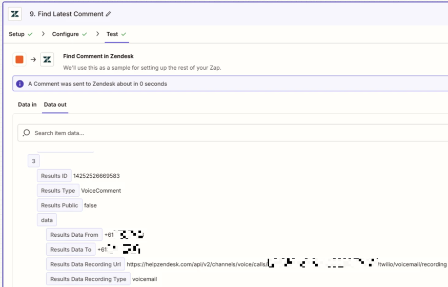 - Find any variable from the “Find Latest Comment” in Zendesk that isn’t the “File Source URL” shown above.