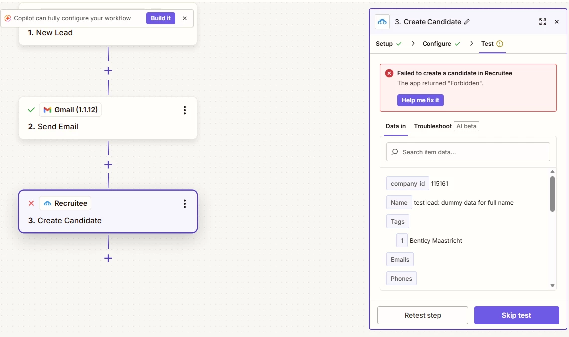 I’ve recently started receiving an error message, and as a result candidates are no longer being pushed into Recruitee.