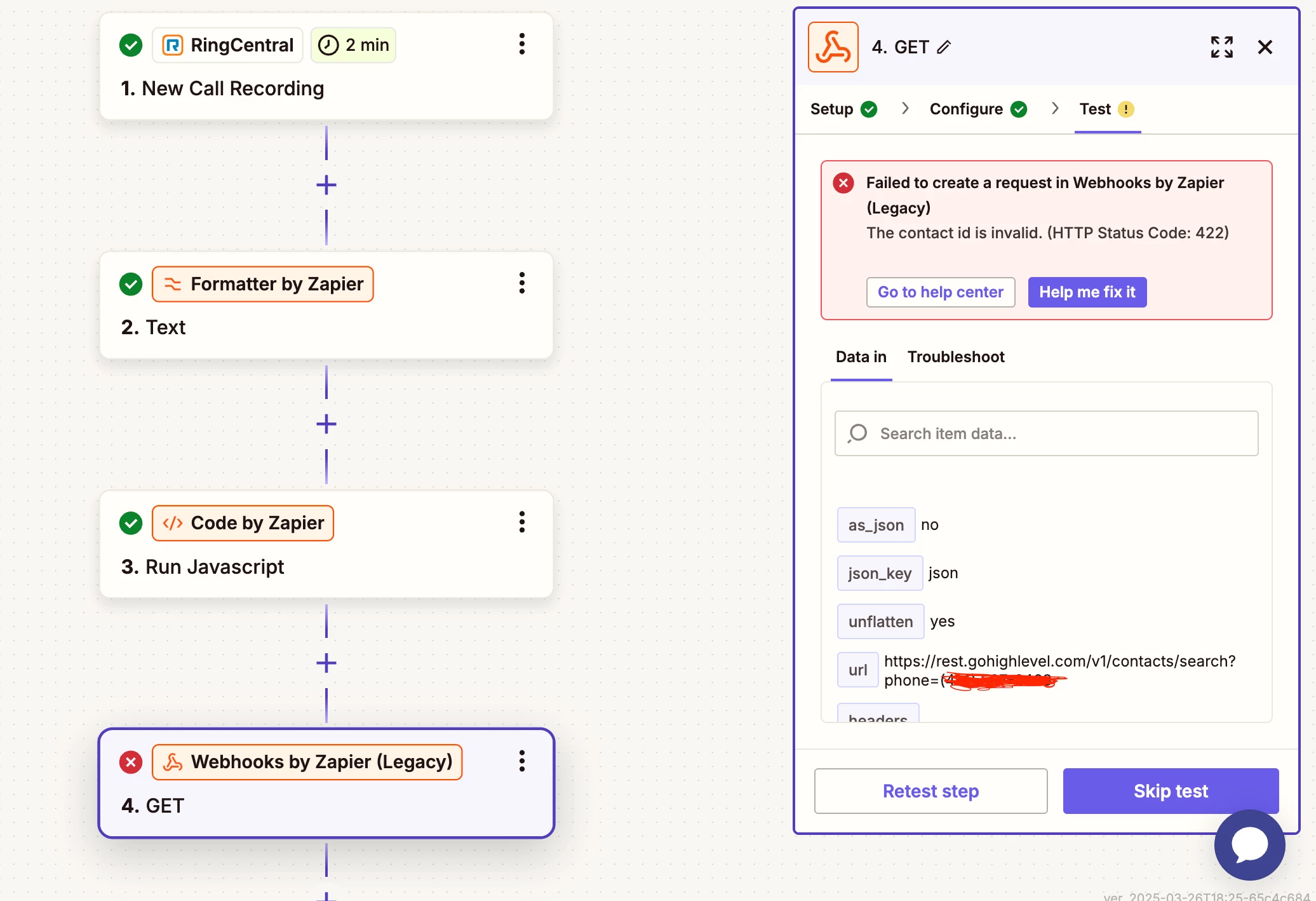My Goal is to get/track call recordings in GHL from Ringcentral. I wanted to integrate Ring Central with GHL through zapier but, when I tried its giving me some errors.