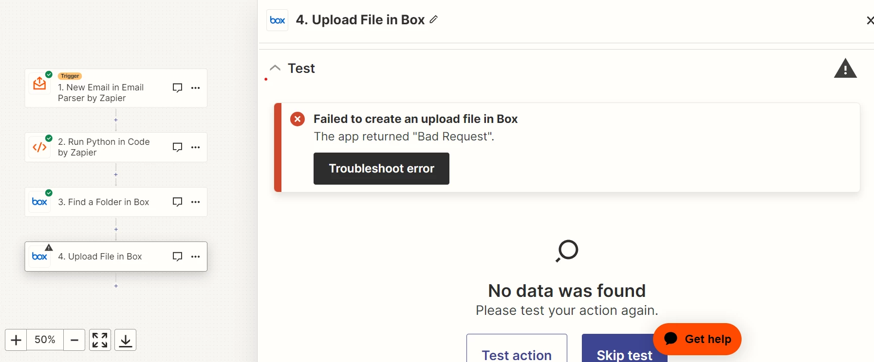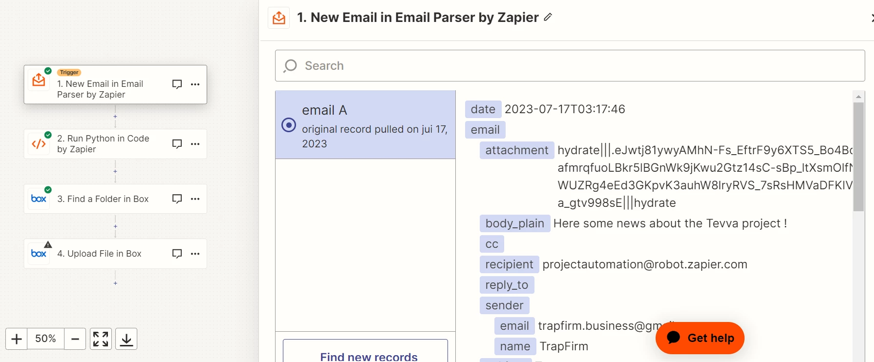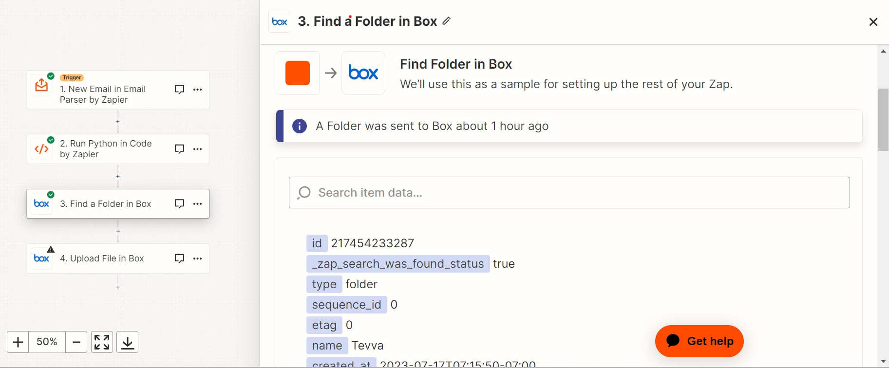 I did a previous step where I searched for this folder and it gives me a positive answer with the good folder. So looks like I have no problem using APIs with my box account.