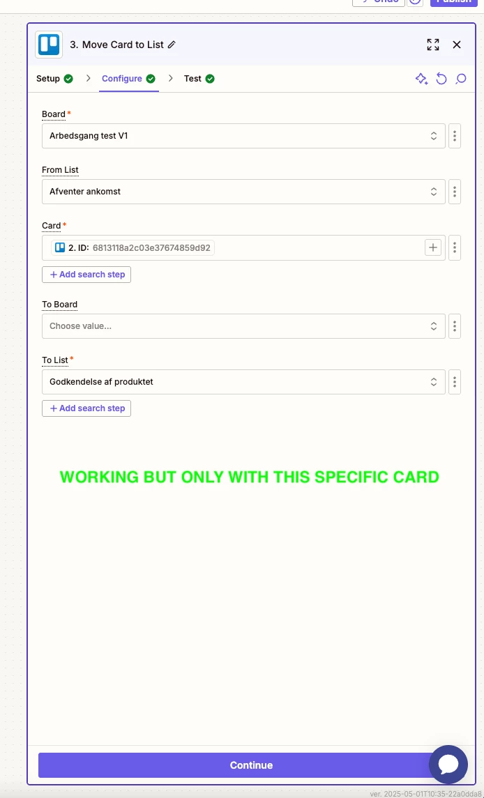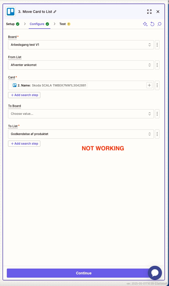 I’m building a Zap that automates Trello card handling based on VIN numbers (stelnummer) parsed from emails. Here’s my flow: